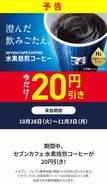 セブンイレブン10月28日(火)から11月3日(月)までの期間限定セブンカフェ水素焙煎コーヒーが20円引き!※セブンイレブン...